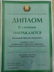 Былицкий Максим — диплом 2-й степени по обществоведению.
