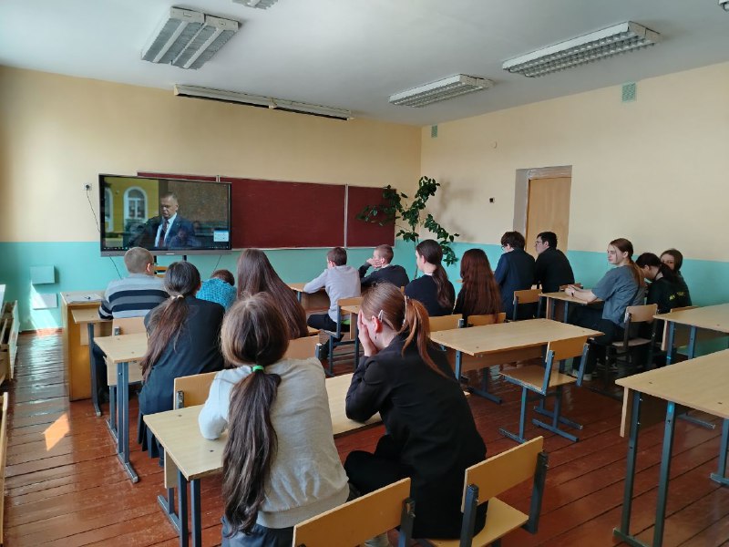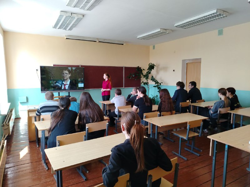 18.04.25. В ГУО,, Кировская средняя школа Жлобинского района, учащиеся 8 и 10 класса присутствовали при показе видеороликов,, Вступление в БРСМ,, и,, Президент А. Г. Лукашенко о БРСМ,,.